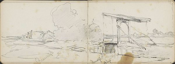 This is a sketch of three figures by a waterside, possibly the Zuidkolk in Delft, made by Willem Cornelis Rip. It looks like it's been made with graphite on paper. Isn’t it interesting how the artist is thinking through drawing? The lines are tentative, searching, finding the forms of the figures and the boat. I love the way the artist has captured the light on the water with just a few strokes. It feels so immediate and direct, like a snapshot of a moment in time. It has that 'right-off-the-cuff' feel. The figures themselves are rendered so simply, but with a real sense of character. You can almost feel the weight of the buckets they are carrying, and the breeze coming off the water. It reminds me a little of James McNeill Whistler's quick sketches of the Thames. Art’s an ongoing conversation. What do you think they're talking about?