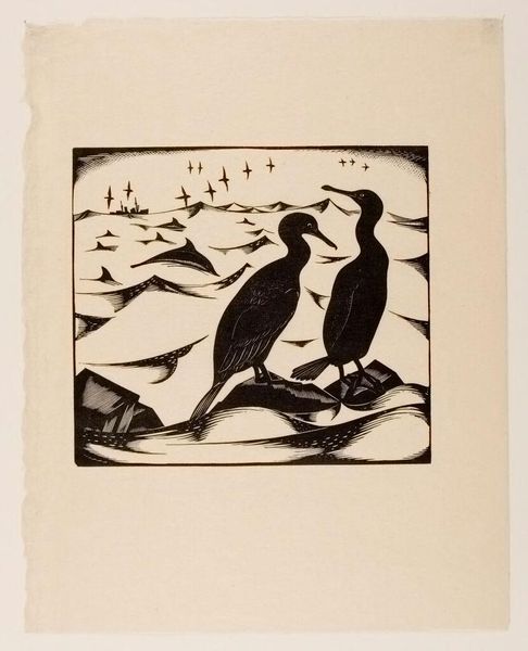 Editor: So, this is "Ancient History" by Robert John Gibbings, a wood engraving. It's so striking with its bold black and white contrast. I find the orangutan's expression almost comical. What do you make of it? Curator: Well, isn't it curious? Gibbings, known for his sharp cuts, captures a thoughtful primate. This isn't just about depicting an animal, it's about the relationship we have with nature, with our own origins. Does the title "Ancient History" hint at something about ourselves reflected back at us, perhaps? Editor: Interesting, it makes me think about evolution and our place in the world. Curator: Exactly! The artist presents a mirror, and it's up to us to see what's reflected. It’s like glimpsing a familiar face in an old photograph, isn't it? Makes you wonder what stories those eyes could tell.