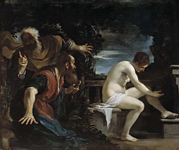 Anthony van Dyck painted 'Jupiter and Antiope' sometime in the 17th century, using oil paint on canvas. Van Dyck was part of Peter Paul Rubens's workshop, where the division of labor was a norm: assistants specialized in painting drapery, animals, or backgrounds. Here, the textures achieved in the fabrics, the sheen on the eagle's feathers, and the flesh tones all point to a highly developed studio practice. Consider, for example, the build-up of thin, translucent layers of paint, a hallmark of the Flemish tradition. Look closely and you can see how the artist manipulated the viscosity of the oil paint to create contrasting effects, from the smooth, almost porcelain-like surface of Antiope's skin to the rougher, more textured rendering of Jupiter's beard and the eagle’s plumage. It is important to appreciate the ways in which materials and the making process have imbued the artwork with social significance. 'Jupiter and Antiope' is not just an image, but a testament to the skill, labor, and cultural values of its time.