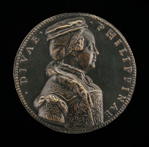 Editor: This metal medal from 1526 portrays Caspar Wintzerer, a Bavarian soldier, in profile. It strikes me as a powerful, almost stoic depiction of a man. What historical contexts are important for us to understand this work? Curator: This portrait medal offers insight into Renaissance society and its valorization of individuals, particularly those connected to political or military power. Think about the rise of humanism and how it shifted the focus towards earthly achievements. Why would a soldier be commemorated in this way? Editor: I guess to celebrate his service or achievements? Like a historical snapshot of someone deemed important by society. Curator: Precisely! These medals were often commissioned by the individuals themselves or their families, reflecting a desire to be remembered. Consider the inscription - "AET. S. LI". What could that signify about the person depicted, given this historical context? Editor: Maybe it's his age, like 51? So, it adds another layer, making it not just a depiction, but almost a historical document recording someone at a specific moment. But what about Hagenauer, the artist? Did he often portray military figures? Curator: Friedrich Hagenauer's involvement situates the work within a network of artists and patrons connected to powerful courts and merchant families in Southern Germany. While he created portraits of people from different walks of life, it is important to consider *why* this imagery would be impactful and circulated publicly through casting or gifting in metal, given ongoing social or religious tensions like the Reformation, especially as religious beliefs often had tangible impacts on portraiture and patronage at that time. Editor: So, this medal isn't just about one man, but also about how society viewed power, legacy, and even individual identity at this crucial point in history. I appreciate learning more about the public function art had back then. Curator: Exactly! And how even small-scale objects can offer rich insight into social and political life.