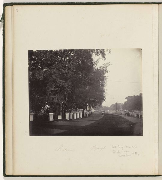 Editor: This is an albumen print from between 1890 and 1910, "Gezicht op een huis en het water van Gunung Sahari in Batavia" by Otto Hisgen. The sepia tones give it an antique feel, but it's really the composition—the canal dividing the scene, the solitary figure—that draws me in. What strikes you most about this photograph? Curator: Well, focusing on its materiality reveals a lot. The albumen print process itself is fascinating—coating paper with egg whites and silver nitrate, exposing it to light… Laborious! This immediately highlights the human involvement, the labor, that often gets overlooked in these seemingly straightforward landscapes. Editor: Human involvement beyond the composition, you mean? Curator: Exactly. Look at the context. "Batavia" is colonial Jakarta. So, while the photograph seems to depict a tranquil scene, it’s born from a history of exploitation. Who had the means to commission or produce these images? Who benefitted from the depiction of this "tranquility?" Was it the Dutch colonizers, or was it for Indonesian distribution? Editor: That’s a good point, the labor and the resources involved were certainly not distributed equally. I guess I was viewing it with twenty-first century eyes, but the photograph itself becomes a product of that unequal system. Curator: Precisely. The very act of creating and consuming such images becomes a form of cultural and economic exchange. The materiality is linked to power, isn't it? We should consider whose narrative this image supports. Editor: I never thought of it that way, but understanding the material creation of this image completely shifts my perspective. It is no longer just a pretty picture, it's a cultural artifact with a history of labor. Curator: And questioning who benefits helps unlock that history.