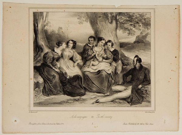 Editor: This is George Cruikshank’s “Modern Chivalry.” It's an etching, and the level of detail is pretty striking. I’m curious about the way he's structured the scene. What do you see in this piece? Curator: The composition employs a dynamic interplay of line and form. Observe how the artist uses hatching and cross-hatching to create tonal variation and spatial depth. The figures are arranged in a somewhat theatrical manner. Note the tension between the linear quality of the etching and the implied volume of the figures. Editor: So, it's more about the technique and the way the lines create depth, rather than the story being told? Curator: Precisely. The narrative, if any, is secondary to the formal relationships at play within the image. Editor: I'll definitely look at etchings differently now, focusing on those details.