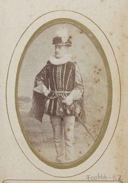 Curator: Here we have Hendrik Anthonie Karel Ringler’s “Portret van een staande jongen bij een stoel,” a gelatin-silver print estimated to have been made between 1872 and 1879. Editor: The sepia tone immediately gives it such an antique feel. Look at the boy's pose! He looks stiff, maybe even a little resigned. Curator: It's interesting to consider the materiality here. The gelatin-silver process itself democratized photography somewhat, allowing for mass production. Think about how many portraits like this would have been made. What narratives about class or familial identity were being carefully constructed, and how? Editor: That's a good point. It reads as a middle-class attempt to mimic aristocratic portraiture, but through this newly accessible technology. The boy's outfit almost looks like a uniform, emphasizing a kind of ordered respectability. There’s a subtle power dynamic—a visual assertion of status and control during an era of immense social change. Curator: Absolutely. Consider the ornate chair, too—clearly a prop intended to signify wealth and sophistication. What was the social impact of suddenly being able to render your material surroundings with such precision, so much faster than painting? This object suggests that photographs began serving as records for emerging industries as a result. Editor: Exactly, and photography gave agency to subjects previously excluded. Looking at the labor involved - from the studio workers preparing the chemistry to the subject sitting for extended periods - it brings forth interesting intersections. What were his thoughts at that moment? Or did it matter at all, perhaps his role here was merely a signifier of larger family aspirations? Curator: He's so still, there in that era’s constraints! Thinking about those conditions can change how you view such historical photographs. Thanks to its relatively speedy methods of production, portrait photography soon turned into a cultural product. Editor: And still it can reflect the larger structures around race, gender, or ability. Analyzing those traces makes history not just about who made the pictures but who the image shaped—and whose stories were silenced. It challenges the traditional boundaries of art, inviting contemplation around societal values during the turn of the century and even present days. Curator: Precisely, and paying attention to the material conditions of its production gives us new opportunities to explore. Editor: It invites more dynamic ways to contextualize. I walk away with new considerations every single time!