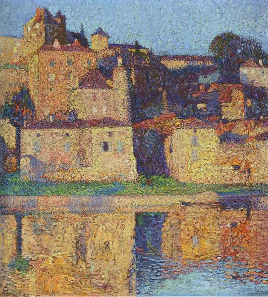 Henri Martin painted "Ramparts at Collioure" with oil on canvas, using a pointillist style, which, for me, makes it all about the journey of painting itself. What strikes me is the texture and the way light plays across the surface. You can almost feel the individual dabs of paint, like tiny mosaic tiles, building up this scene. The colors are bright, with yellows and blues dominating, giving it that sunny, seaside feel. Look closely at the water - each little stroke seems to dance, capturing the movement and reflections. It's like Martin wasn't just painting a picture, he was building it, bit by bit, with these vibrant marks. It's interesting to think about how the pointillists, like Seurat, influenced artists like Martin, pushing them to explore how color and form come together through the act of painting. It’s a reminder that art is always in conversation with itself, each piece building on what came before.