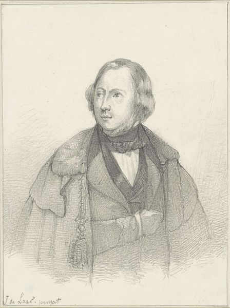 This is a small portrait drawing of Nicolaes Maes, made by an anonymous artist. The image captures the style of dress and long hair typical of the Dutch Golden Age. But this is more than just a likeness. Portraits in 17th-century Netherlands were important markers of social status and individual identity, reflecting the values of a society that was increasingly urban, commercial, and individualistic. Maes himself was a painter, and the institutional structures of artistic training and patronage in the Dutch Republic played a crucial role in shaping his career. The artist’s gaze, averted from the viewer, along with the sketch-like quality of the image, might be seen as a subtle commentary on the artist's self-image. To truly understand this artwork, one must delve into the archives, examining period documents, studying the history of fashion, and familiarizing oneself with the economic structures of the art market. The meaning of this drawing lies not just in its aesthetic qualities, but also in its rich social and institutional context.
