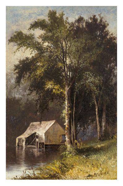Editor: So, this is “The Toutain Farm at Honfleur” by Camille Corot. It’s an oil painting, looks like a plein-air work. There’s a real sense of peace… almost idyllic, but with a grounded, earthy quality. What do you see in this piece, from your perspective? Curator: Beyond its surface serenity, I see a commentary on the romanticization of rural life during a period of rapid industrialization. Consider how artists like Corot shaped urban perceptions of the countryside. How might this image have functioned for a Parisian audience yearning for escape, and what class dynamics were at play in that desire? Editor: That's fascinating! I hadn't really considered it as anything other than a pretty landscape. Curator: It’s easy to get caught up in the surface appeal, the realism and pastoral scenes that obscure a more complex story. Think about the role of the farm. It represents stability and tradition. What is unsaid? Who benefits? How is labor portrayed—or more accurately, not portrayed—in this kind of image? Editor: That makes me see the people in a different light, it feels almost… curated, instead of just observed. Curator: Exactly! It's a constructed ideal. Where are the harsh realities of rural labor? The exploitation? Corot is offering a specific narrative, one that is intertwined with power and privilege. Who owns the means of production in this landscape? What do we know about their lives and their families? This invites us to deconstruct the picturesque, consider who is included and who is excluded in this view of rural life. Editor: I see that now. I hadn’t thought of landscape art in terms of these larger systems. Curator: Precisely, questioning representation is key! I hope now you consider more often not just what we see, but what remains unseen.