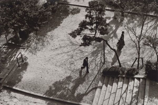 Editor: This is Paul Strand's "From the Viaduct, New York," likely taken between 1916 and 1917. It’s a photograph, a print of a city scene in black and white. The perspective is so striking; it’s from above, almost voyeuristic. What do you see in this piece? Curator: I see a pivotal moment in American Modernism. Strand, like many artists of his time, was grappling with the rapidly changing urban landscape. Think about the social context – the rise of industrialization, immigration, and a new, uneasy relationship between people and the built environment. The stark angles and high vantage point reflect this disjunction. Editor: So the viewpoint isn't just aesthetic? Curator: Not at all. It speaks to the alienation that many felt in the face of modernization. Consider also the fragmented, almost cubist quality of the composition. Is Strand perhaps suggesting that the traditional ways of seeing and understanding the world were no longer adequate in this new era? Editor: The high angle flattens the scene and makes me a bit dizzy. Curator: Exactly. It disrupts traditional perspective and draws our attention to the abstract patterns within the urban chaos. What social narratives are subtly embedded here, in your opinion? Who gets to have a 'view from above'? What are they watching? Editor: The buildings almost seem to press in on the people below, maybe showing the growing disparity in space and resources between the city's inhabitants. The lack of color really adds to the stark, alienated feeling too. Curator: Precisely. This photograph, while seemingly a straightforward depiction of a city scene, is a powerful statement about the social and psychological impact of modernity. Editor: I never thought about it that way. Now I see it as much more than just a picture of a city. Curator: And that’s the beauty of art, isn’t it? It challenges us to look beyond the surface and engage with the deeper cultural and historical forces at play.