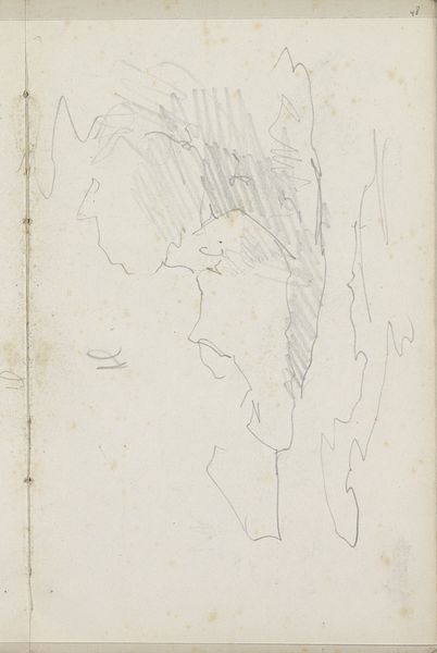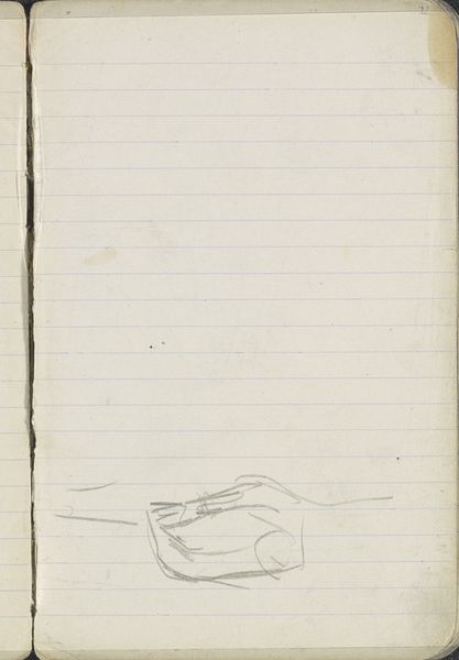George Hendrik Breitner made this landscape drawing with graphite on notebook paper. The lined support seems almost mundane, chosen for its convenience rather than any aesthetic quality. The sketchiness of the graphite marks suggests a fleeting moment captured, as if Breitner was recording an impression more than crafting a finished work. The artist's hand moves quickly, capturing the essential forms without laboring over detail. The nature of this work invites us to consider the broader social context of artistic production. Breitner would likely have carried a notebook with him as he traversed Amsterdam, capturing spontaneous impressions of the city around him. It speaks to a democratizing impulse, a desire to find beauty not only in formal compositions but in the everyday. Ultimately, considering the materials and methods behind this landscape sketch allows us to appreciate the artistic vision not as a rarified craft, but an engagement with the realities of his time.
