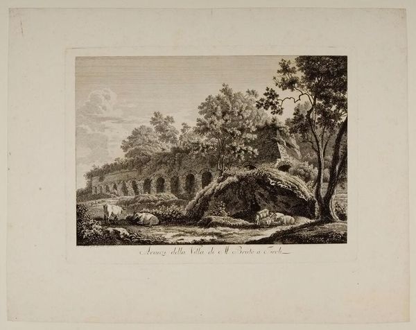 Curator: This is "View near Crogen on the River Dee" by Francis Jukes, now residing here at the Harvard Art Museums. Editor: It evokes such a peaceful, almost melancholic mood. The muted tones and the lone figures crossing the bridge really set the scene. Curator: The bridge, in many ways, acts as a symbolic link. It connects not just physical spaces but also embodies the passage of time, the flow of history. Editor: Absolutely. We see this romanticism of the rural landscape being promoted politically through art, shaping perceptions of British identity. Curator: And the river itself? A classic symbol of constant change, of the journey through life, echoing ancient mythologies and spiritual quests. Editor: I appreciate how Jukes captures a very specific moment, yet resonates with broader themes of nature, progress, and national identity. Curator: Indeed, it makes you ponder the symbols woven into our surroundings, how they shape our cultural memory. Editor: It makes me think of art's role in constructing and preserving those cultural narratives, one image at a time.