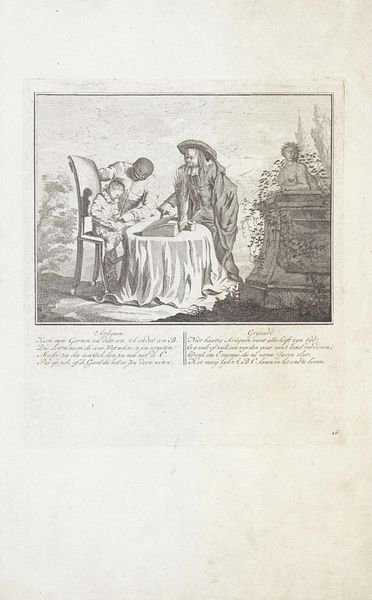 Boëtius Adamsz. Bolswert created this image titled 'Willemynken beklaagt zich over het eten bij een bediende', using engraving. Observe the gesture of complaint, a motif deeply embedded in the human experience. Here, Willemynken expresses dissatisfaction with the fare, a scene reminiscent of countless depictions of domestic discontent. This motif echoes through the ages, from ancient Roman comedies to Dutch Golden Age paintings. Consider the enduring symbol of the 'complaining woman,' often depicted in folklore and art, reflecting societal anxieties about domestic order and female expression. This archetype, charged with psychological weight, resonates with our own subconscious perceptions of power dynamics and emotional expression within the household. The emotional aspect of the image underscores the universal, timeless nature of human relationships and the perpetual negotiation of expectations and disappointments. This isn't merely a snapshot of a moment but a recurring theme, a cultural echo, endlessly replayed on the stage of human interaction.