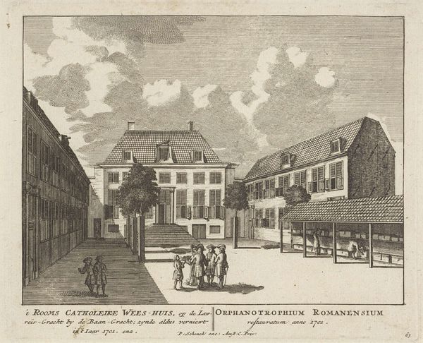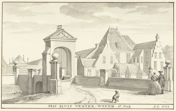 Jan Bulthuis rendered 'The Scottish Church and Lutheran Orphanage in Rotterdam' with pen in gray ink, sometime in the late 18th century. The drawing's meticulous lines and delicate shading evoke a serene urban tableau. The buildings stand as stoic masses, their architectural details rendered with precision. The composition relies on a calculated arrangement of forms. The church, with its symmetrical facade, dominates the view, while the orphanage, slightly to the right, provides a contrasting verticality. Bulthuis uses linear perspective to guide the eye, creating depth and spatial coherence. Note how the figures, scattered across the square, are dwarfed by the architecture, emphasizing the imposing nature of these institutions. The limited tonal range contributes to the drawing's subdued atmosphere, lending a sense of timelessness. Through the artwork’s formal qualities, Bulthuis invites contemplation of the relationship between civic space, institutional power, and the individual, capturing the quietude of Rotterdam’s urban landscape.