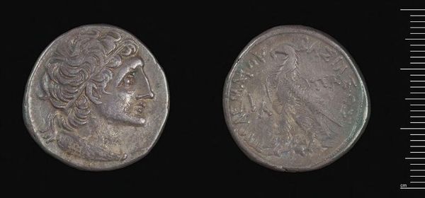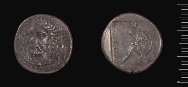 Curator: This is a Stater of the Koinon of Thessaly, part of the Harvard Art Museums collection. Editor: The worn surface suggests a long and busy life in circulation; imagine the hands it passed through! Curator: Exactly. The imagery is quite revealing. On one side, we see Zeus, a symbol of authority and divine power. Editor: And the process of striking these, the skilled labor involved in die-making, speaks to the political and economic organization of the Thessalian Koinon. Curator: Precisely. The figure on the reverse is Athena, perhaps, further reinforcing a sense of wisdom and civic virtue. These symbols acted as cultural messaging. Editor: Right, but the materiality here too, the weight of the silver, its inherent value...all intertwined with the message. It’s more than just propaganda. Curator: I agree, the weight of symbolism and the value of the silver—fascinating how intertwined they become in an object like this. Editor: Indeed, a potent reminder of how much meaning can be pressed into a small piece of metal.