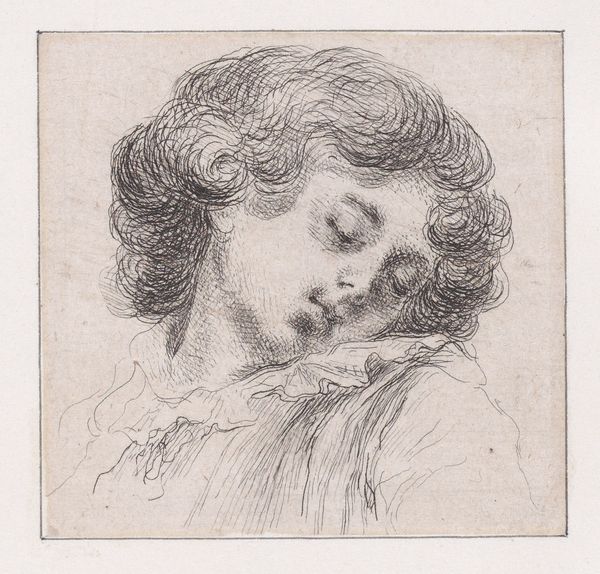 Baron Dominique Vivant Denon created this etching, "Head of a Cherub, after Guercino," capturing the tender image of a cherubic figure. The cherub, a motif deeply rooted in religious art, symbolizes divine innocence and heavenly love. These figures are the messengers between the celestial and earthly realms. Their youthful features and nascent wings evoke purity and spiritual ascension. We see echoes of this motif across various epochs and cultures. In ancient Greece, Eros embodied desire, while Renaissance art transformed cherubs into playful putti. Consider, for instance, how cherubs, in their various guises, adorn both religious and secular works. This continuity demonstrates how certain archetypes persist in our collective memory. These evoke feelings of hope, comfort, and a longing for transcendence. The cherub is not static but fluid; it resurfaces, evolves, and takes on new meanings, reflecting the ever-changing human experience.