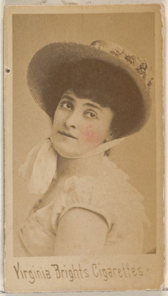 This is a promotional card from the late 19th century by Kinney Brothers Tobacco Company, featuring the actress Margaret Mather. Mather's large hat, adorned with what seems to be flowers, and her high, ruffled collar, are symbols of the era's fashion and social status. The hat, a prominent element, extends back to ancient times, from the straw hats of Greek farmers to the elaborate headwear of Renaissance nobility. It's always been a marker of identity. The delicate flowers adorning her hat, a motif seen across centuries in tapestries, paintings, and personal adornments, evoke themes of beauty, fleeting youth, and the transience of life itself. This links to the vanitas paintings of the Dutch Golden Age, where flowers served as reminders of mortality. Her composed gaze invites the viewer into a world of theatrical illusion, tapping into our collective fascination with performance and transformation. These symbols reappear throughout history, echoing and evolving with each new cultural context, revealing the cyclical nature of human expression.
