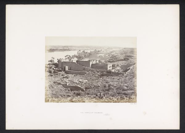 Curator: Here we have "Eiland voor Souda (nu Chania) op Kreta," or "Island for Souda (now Chania) in Crete," an albumen print made around 1898, likely as part of a larger travel album. Editor: There’s a stark stillness to this scene, almost melancholic. The monochrome palette amplifies the weight of the stone island, while the flat water seems to isolate it completely. Curator: Note the clever structuring; the photographer, Johannes Lodewijk Heldring, used the water’s surface and the subtle wave patterns to lead our eyes directly to the island’s fortifications. It is meticulously composed. Editor: Heldring captured this island fortress at a specific moment when empires and cultural identities clashed on that very ground. This type of landscape conveys not just geographic beauty but also stories of conflict and resilience through visual symbols. Crete has been a cultural melting pot, a strategic possession fought over through ages. Curator: Yes, and within the Orientalist lens of the time, the photograph becomes a documentation –almost an inventory– of conquered territories. The meticulous detailing, like the visible stonework, suggests a desire for factual representation, yet it romanticizes the landscape, stripping away the contemporary sociopolitical contexts. Editor: The very structure speaks of defiance against those imposing powers. Fortresses symbolize the need for protection. But they equally function as symbols of power, assertion, and perhaps resistance of the population. Curator: Consider the limited tonal range and the relative softness. The muted colors help convey the textural qualities and material presence, it forces us to consider not just the scene, but the physicality of the island, too. Editor: Looking closely, I'm intrigued by what we *don't* see. Where are the people? The ships? It invites a quiet, perhaps unsettling, contemplation on what was, and perhaps, what’s now lost or transformed over the passage of time. Curator: Ultimately, what strikes me about Heldring's work is his masterful manipulation of photographic space. By manipulating light, form and depth, the picture goes beyond mere topographic document to something more. Editor: A hauntingly beautiful snapshot that reveals history through layers of symbol. The fortress lives and tells its story of struggles.