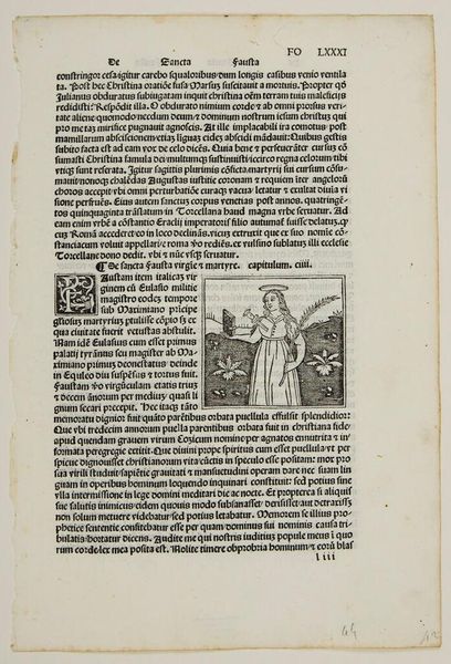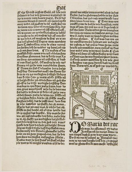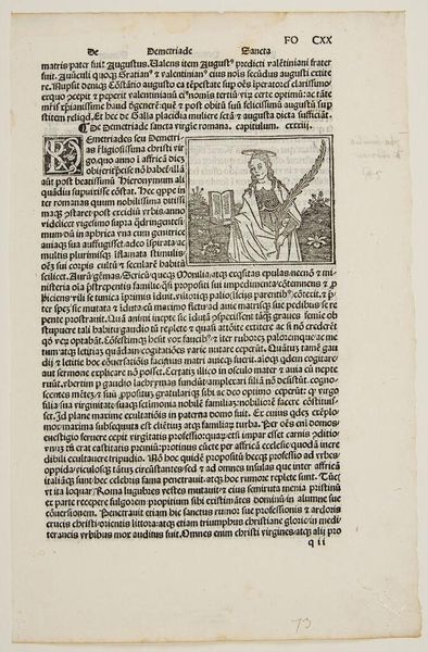 Curator: Here we have an anonymous woodcut simply titled "Saint Margaret." Editor: It feels medieval but with a strangely contemporary graphic punch—high contrast and dynamic. Curator: Indeed. The print depicts St. Margaret in a walled garden, a popular motif associated with the virgin saints. Note the symbols. Editor: Symbols, right. The enclosed garden represents her purity, but I'm wondering about the implication of enclosure here: societal constraints? Protection? Curator: Possibly both. Remember, iconography evolves through cultural memory. The garden initially signified virtue, but later interpretations consider female agency and resistance to male dominance. Editor: Intriguing. It seems the visual language of this work offers a chance to connect threads between the historical and the personal. Curator: Precisely. And visual language is how we understand the past. Editor: True. It's a reminder that these symbolic representations are not static.