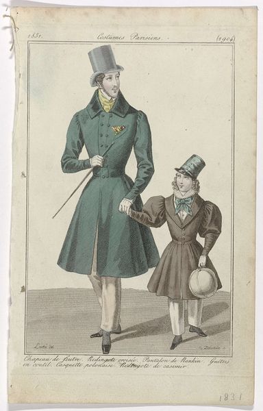 This fashion plate was made in Paris in 1832, using a combination of engraving and hand-applied color. These images were essentially prototypes, meant to be models for the city’s dressmakers and their clients. Look closely, and you can appreciate the incredible detail of the lines that define the figures. The printmaker has created a kind of instructional diagram. Consider the labor involved in the production of the garments themselves – the measuring, cutting, and sewing. Note also the highly constructed forms, the puffed sleeves and nipped waists. These are clothes intended to reshape the human body, imposing an ideal silhouette on the wearer. While fashion plates like these were relatively inexpensive, the clothes they advertised were not. They speak to a culture of aspiration, and the labor of realizing fashionable fantasies. They remind us that what we wear is always a construction, both literally and figuratively.