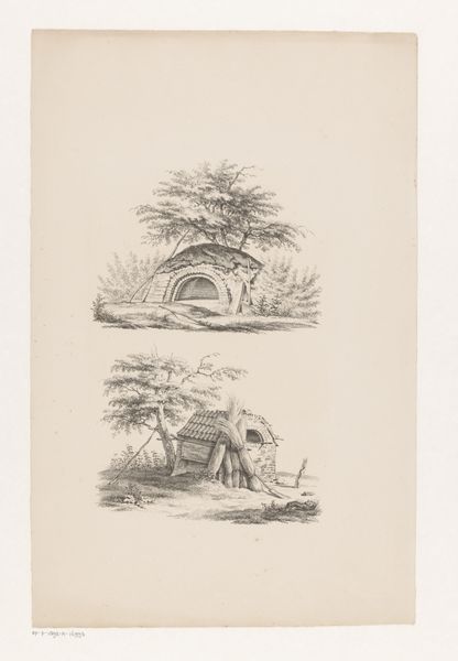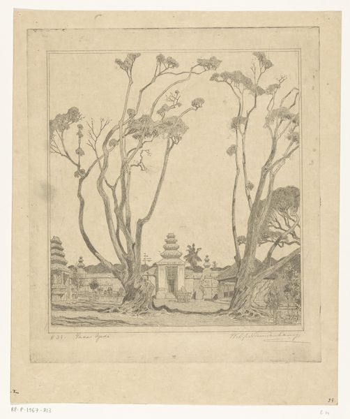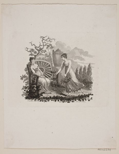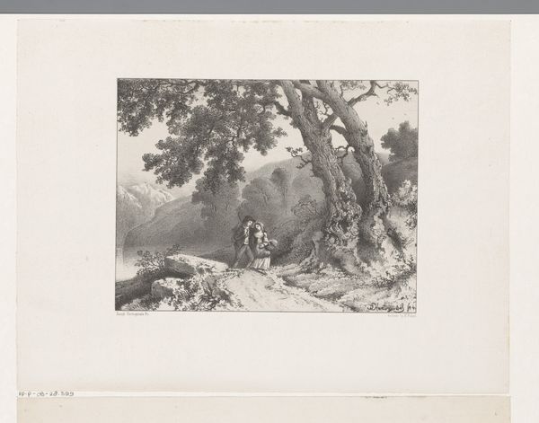 Editor: So, this is Felicien Rops's etching "Man en kind met kruiwagen," created in 1875. It strikes me as rather bleak, capturing a very quotidian scene with what feels like a strong sense of the working class. What can you tell me about it? Curator: This etching offers a potent glimpse into 19th-century social realities, particularly the representation of labor and childhood. Rops, deeply embedded in the Realist movement and often flirting with Symbolism, used his art to comment on social issues. Have you considered how the imagery here may connect with prevailing ideas about the working class and family during that era? Editor: I hadn't thought of it in that specific context, more just a generic genre scene. You mean how the Industrial Revolution impacted family dynamics? Curator: Precisely. Notice the juxtaposition of labor and innocence. The child pushes the wheelbarrow while an adult toils. It speaks volumes about the involvement of children in labor, a common, yet fraught, aspect of the time. Think about how Rops, through distributing his work as prints, sought a broader audience than the typical Salon attendee. What implications might that have for his artistic choices and subject matter? Editor: That suggests he's deliberately trying to show everyday people, rather than wealthy elites, relatable, or… even making a point. Curator: Indeed. Consider too how art institutions like museums at the time largely ignored such raw depictions of working-class life. This print then becomes not just a picture of labor, but a statement *about* visibility and representation. Is it celebrating or criticizing or simply documenting? Editor: Wow. I just thought it was a simple scene of someone working, but it has so much more depth to it. The way you’ve outlined the art’s historical background helps explain Rops’s visual choices. Curator: Exactly. Analyzing art in its social and cultural context gives us deeper understanding about the possible social messages.