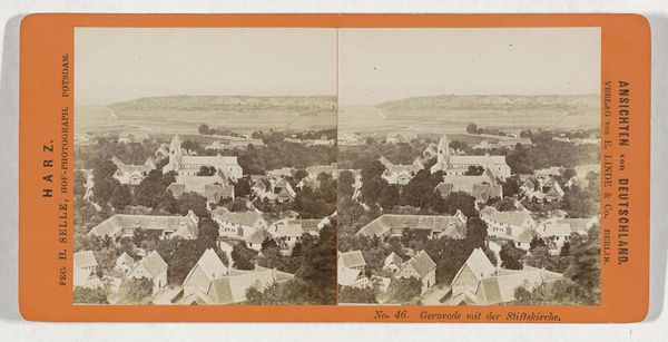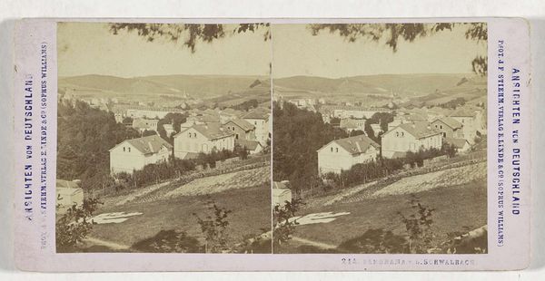 This stereoscopic card showing a view of Sankt Andreasberg was made by Hermann Selle, likely in the late 19th century. As a stereoscopic image, it relies on a mechanical apparatus to create an illusion of depth, offering the viewer a simulated experience of being there. Photography, particularly in this format, was part of a broader culture of industrialization and mass production. This was not about the individual artistic touch, but about capturing and disseminating views for a wide audience. The very repeatability of the photographic print speaks to the increasing mechanization of image-making. The image itself documents a specific place and time, but it also participates in the social and economic systems that enabled its production and distribution. Photography like this contributed to shaping perceptions of landscape and culture, turning far-off places into consumable images. By understanding the materials and processes behind this photograph, we see it not just as a record, but as a product of its time, embedded in networks of labor, technology, and commerce.