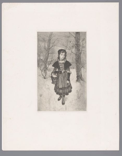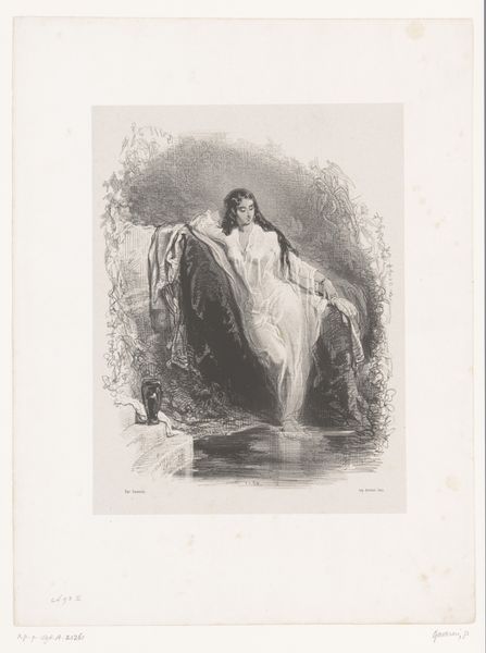 Curator: This engraving is titled "Onbevlekte Ontvangenis van Maria," or "The Immaculate Conception of Mary" and it’s attributed to Charles Cousin. Dating roughly from 1817 to 1887, it beautifully marries academic art with Baroque sensibilities. Editor: Immediately I’m struck by this sense of serene elevation, she is just gracefully afloat amidst all of these chubby cherubs, almost like she's ascending on a fluffy cloud. There's a real lightness to the whole piece despite the serious subject. Curator: Lightness is key here. Cousin uses the engraving medium to masterful effect, the varying densities of line create these pockets of almost ethereal light. Note how this affects the narrative; Mary stands bathed in light, symbolizing purity, surrounded by these swirling figures—putti and angels—on this swirling cloud. Editor: The arrangement, though complex, remains very classical. The composition itself almost divides the visual space to direct the eye, it keeps drawing me back to the centre, which, as is typical for this sort of allegorical piece, makes Mary appear like a beacon. Tell me, would you also say that it looks as though she stands on a crescent moon? Curator: Indeed! The crescent moon situates the image within traditional Catholic iconography. The formal symmetry contributes to a sense of otherworldly harmony but is not quite perfect if you really examine it. I believe the minor deviations, perhaps unintentional, make it more engaging to observe than its strictly Baroque-style painting counterpart. The billowing cloak, that dynamic grouping of cherubs near her feet... it provides movement but does not break that spiritual balance that makes this academic piece resonate so well. Editor: I find the technique incredible—this level of detail, using just lines! There is just such subtle tonality which breathes an air of grace throughout. It also strikes me that although Mary looks very proper she is very natural for a saint; it is almost an intimate snapshot with a touch of the fantastical that makes this artwork memorable for me. It evokes the tenderness of motherhood with an otherworldly glow. Curator: Yes! In her upward glance, one finds that sense of hope and a profound sense of humanity which defies all those symbolic frameworks that some formalists adore. This has been really enlightening. Thank you for these perspectives, I will certainly observe it differently from now on. Editor: The pleasure was all mine! To see new facets of an old piece—isn't that what art's all about?