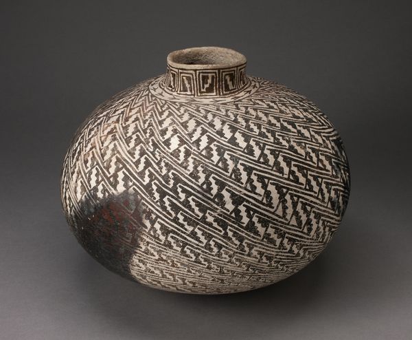 Editor: Here we have "Vessel," a ceramic sculpture from the 20th century by an unknown Zulu artist. Its dark, burnished surface is punctuated by intriguing geometric carvings. The earthy material gives it such a tactile feel, so grounded, so primal. What strikes you when you look at it? Curator: As a materialist, I immediately consider the labor and process embedded within this "Vessel." The hand-built construction, the firing, and the incised designs. It begs the question: was this created as a utilitarian object or purely for aesthetic contemplation? Does that distinction even hold in this cultural context? Editor: That's interesting. I was seeing it more in terms of its pure form. Do you think the repetitive geometric patterns play a role? Curator: Absolutely. Consider how the repetition mimics the natural processes required for production: digging clay, preparing it, and slowly building the form. This repetition reflects the rhythm of the maker's labor, a dance between hand and earth. It also raises the question of access. Who controlled these materials and the means of production within Zulu society? Editor: So you're saying the value of this vessel isn't just in its beauty, but in the story of how it was made and its place within the society that produced it. Curator: Precisely. The beauty becomes a byproduct of the labor and the cultural context of production, not the sole purpose. We are looking at more than just a vessel; we are observing a distillation of material, skill, and social meaning. Editor: I hadn't considered how much the act of making can influence the meaning of the object itself. This has made me look at pottery in a whole new light! Curator: Excellent. By focusing on the materiality and production, we gain a deeper understanding of the vessel and the culture it embodies.