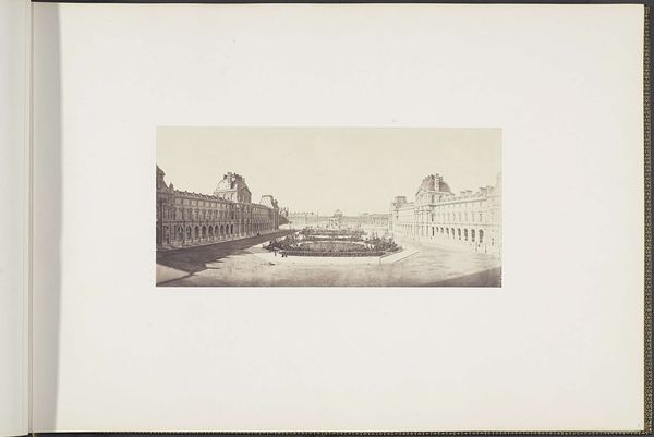 This is Edouard Baldus's "Panorama van het Nieuwe Louvre: Tuilerieën, cour Napoléon en Carrousel", a photograph capturing the ambitious architectural projects of mid-19th century Paris. Baldus, working in a time of great social and political change, documented the transformation of Paris under Napoleon III. Photography in this era was often used to assert power and project an image of progress and control. Baldus, as a chronicler of this transformation, walks a tightrope. Here we see a moment in which new technologies and state power came together. The result is both a reflection of, and a participant in, the construction of national identity. How does one represent a nation? What parts get emphasized and what parts are erased? Through his lens, Baldus invites us to reflect on the complex relationship between art, politics, and identity in a rapidly changing world. The emotional weight of this image rests in its capacity to remind us of both the grandeur and the potential erasure inherent in the pursuit of progress.