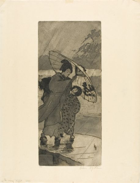 This is Theodore Roussel’s delicate etching, "Emma and Her Baby, Chelsea Embankment." Although undated, it offers a glimpse into the late 19th-century world of women and children. Roussel, who was deeply influenced by James McNeill Whistler, captures a tender moment of maternal affection. Yet, it's impossible to ignore the socio-economic realities subtly woven into the image. Emma, presumably a working-class woman, is seen with her child against the backdrop of the Chelsea Embankment, an area undergoing rapid urban development at the time. The fence creates a visual barrier, perhaps speaking to the divisions of class and access. We’re left to wonder about Emma's life, her struggles, and her dreams for her child in a rapidly changing London. The simple, yet intimate portrayal evokes a quiet contemplation of motherhood. It is tinged with the realities of gender and class in the Victorian era.