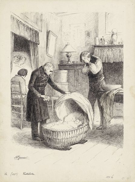 Gijsbertus Johannes van Overbeek made this drawing of a boy kneeling by a dog in a basket, and it's all about line, line, line. The whole thing is built up with these hatched marks, like he's knitting the image together. Look at the way he uses line to create form and shadow, especially in the folds of the cloth on the table. It's so alive, not just descriptive, but really expressive. The texture is all suggested, yet you can almost feel the rough weave of that basket. Van Overbeek’s marks are so energetic. The tile-work on the floor is also a key element. It goes to the horizon line which gives the impression of space. It seems so simple, but it’s also so carefully considered. This makes me think of other illustrators, like Quentin Blake, who can convey so much with just a few strokes. To me, art like this is about the conversation, the story that unfolds with each mark. It's not about perfection; it's about feeling and connection.