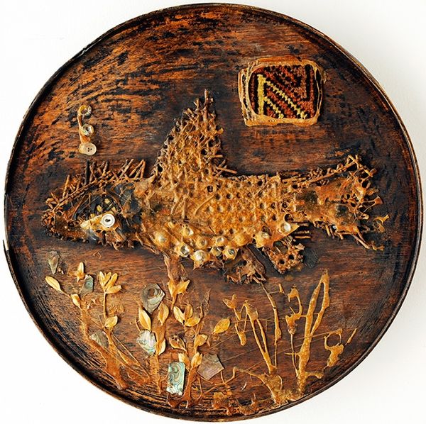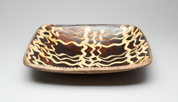 This ceramic tray, made by Christopher Dresser at Linthorpe Pottery, presents a study in restrained naturalism. The lotus design emerges from a subtle relief, its leaves and flowers rendered in muted earth tones that evoke a tranquil pond. The composition balances formal structure with organic fluidity. The arrangement of the lotus blossoms and leaves follows a deliberate pattern, yet the slight variations in form and texture prevent it from becoming rigidly symmetrical. This interplay between order and nature is central to understanding its visual impact. The tray's edges, finished with a textured, almost furrowed effect, create a frame that both contains and contrasts with the smoother floral design. The tray functions as more than mere decoration; it encapsulates a broader cultural dialogue, a negotiation between industrial production and the organic world. The lotus, a symbol of purity and enlightenment, is here transformed into a mass-produced object, inviting questions about value, authenticity, and the role of art in everyday life.