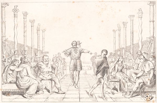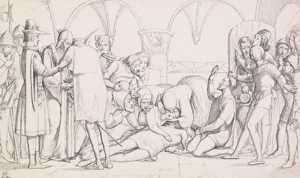 Pieter Bartholomeusz. Barbiers created this drawing, "The Arrest of Pieter Dirksz. Hasselaer," using pen in gray ink. The scene pulses with a raw, kinetic energy, its dynamism captured through stark lines. Figures gesture wildly, caught in a moment of upheaval, their forms rendered with a sense of immediacy. Barbiers masterfully uses line to create a composition with a palpable sense of instability. The gray ink adds a layer of starkness, underscoring the drama unfolding. This isn't just a depiction of arrest; it's an exploration of power and disruption. The figures, though sketched with quick strokes, convey complex emotions, and the space around them feels charged, almost volatile. Consider how Barbiers leaves so much unsaid, inviting us to fill in the gaps and contemplate the broader implications of this power struggle. The drawing challenges us to question fixed meanings, suggesting that even in moments of apparent order, chaos lurks beneath the surface.
