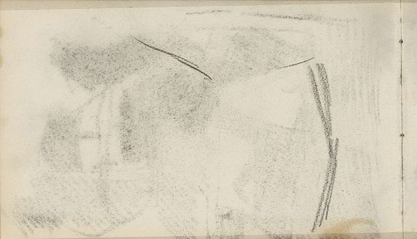 Curator: Isaac Israels made this pencil drawing on paper somewhere between 1886 and 1903. It's titled, "Abklatsch van de krijttekening op pagina 60," currently held at the Rijksmuseum. Editor: At first glance, the piece feels very elusive, almost ghostlike. The lines are incredibly faint, as though the image is trying to disappear into the paper itself. It has a certain quietness. Curator: That sense of quietness probably relates to Israels' engagement with Impressionism, though, importantly, his focus diverged towards capturing scenes of urban life and leisure, making this drawing, with its apparent abstraction, a bit of an outlier within his known portfolio. It reminds us that Impressionism wasn't solely about landscapes, it became a vehicle for representing modern social dynamics as well. Editor: Right, and that shows here in its minimalist approach. It is line work that offers form rather than definitive space. The pencil's application is almost hesitant, creating broken lines that imply shape rather than defining it. It resists easy interpretation. There's an element of chance, perhaps reflecting the fleeting moments that Impressionism tried to capture. Curator: The artwork, of course, has some ambiguity. Its location on page 60 could suggest an element of process - studies that exist more for the artist than the public. In looking at Israels through the context of societal trends, it is fascinating to understand Israels position in art exhibition culture at the time - a trendsetting artist deeply influenced by French artistic developments but one that was also shaped by the socio-political dynamics specific to the Netherlands. Editor: Interesting point. For me, I still can’t shake the visual simplicity, in that, regardless of its cultural framework, I respond mostly to the textures here: the rough grain of the paper playing against the soft, smudged quality of the pencil strokes. Curator: It is those juxtapositions between materiality and form that I too find quite captivating. The artwork, I think, really urges us to ask how artists like Israels experimented with and pushed the boundaries of representation itself. Editor: Agreed. The lack of resolution becomes part of the work's own expressive quality and that perhaps becomes it’s modern sentiment.
