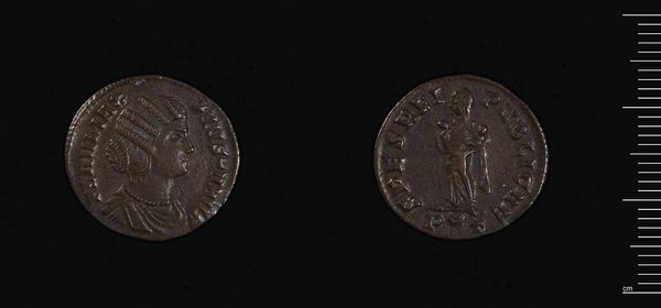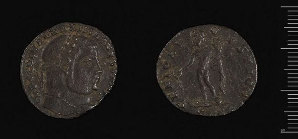Curator: Looking at this coin of Constantine I, struck in Trier, one is immediately struck by the formal portraiture, the stark relief against the coin's surface. Editor: It feels weighty, doesn't it? Like a talisman. The Emperor's image, deliberately placed, would have resonated deeply, instilling loyalty and reinforcing his power in the cultural psyche. Curator: Indeed. Note how the circular form reinforces a sense of totality, of the Emperor's all-encompassing dominion. Editor: And consider the act of minting itself. A physical symbol of Roman authority, currency became a tool of propaganda. This object's circularity suggests endless circulation—the constant reminder of imperial presence. Curator: The material itself, though humble, speaks volumes. A tangible piece of history, worn smooth by countless hands, linking us directly to the past. Editor: Seeing how the Emperor is represented, and how this object has circulated, makes it easier to imagine how its value may have shifted over time. Curator: I agree; it's a fascinating insight into the enduring power of symbols. Editor: A powerful memento, still speaking volumes today.