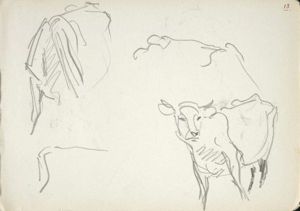 Curator: Here we have John Singer Sargent’s “Sketches of Two Goats; verso: Sketch of a Goat," a graphite study. The dimensions are modest: 11.2 by 15.9 centimeters. Editor: It feels impulsive, like a visual note jotted down in a flash. The goats are captured with such economy of line. Curator: Indeed. Observe the varied application of graphite: hatching to denote shadow and mass, contour lines defining form. The verso even contains another quick goat sketch. Editor: I love the almost haphazard energy. You sense Sargent was just trying to nail down the essence of goat-ness! I imagine the paper rustling. Curator: Such sketches offer invaluable insight into Sargent’s working method. He understood goat form. Editor: Right? They're bleating in my mind's ear! It’s fascinating what a few lines can evoke. Curator: A testament to the enduring power of concise, formal representation. Editor: Absolutely. It’s like a little window into Sargent's mind, a reminder that even masters sketch goats.