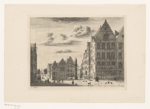 "Waterpoort en een stadsgracht," was made by Johannes or Lucas van Doetechum, and consists of an engraving on paper. The image is a product of early printmaking, where the artists would have painstakingly etched lines into a metal plate, which was then inked and pressed onto paper. The resulting image offers a glimpse into the urban landscape of the time, its waterways bustling with activity, suggesting a vital artery for trade and transport. The stark contrast between the lines and the paper throws the architecture and city's inhabitants into sharp relief. This technique, removed from the direct touch of painting or sculpture, allowed for the mass production of images, democratizing art and information. In the context of labor and class, the print becomes more than just a pretty picture. It represents the mechanization of art, a step away from the unique, hand-crafted object towards a more reproducible commodity. The very act of printing, with its repetitive motions and industrial undertones, mirrors the burgeoning capitalism of the era. By appreciating the materials and processes, we can truly understand its historical significance.