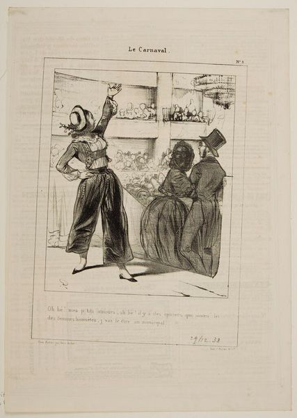 Curator: Looking at this print by Nicolas Toussaint Charlet, titled "Inkwartiering, 1832," immediately gives you the feeling that we’ve stumbled upon a scene unfolding in a personal sketchbook. It's all swift lines and the suggestion of depth. Editor: It does, doesn't it? A snapshot really. What strikes me first is the contrast. One figure practically bursting with anger, while the other seems weighed down by resignation, by the drudgery of duty perhaps? I mean, think about what "inkwartiering," or quartering, actually meant in that era. Curator: Exactly, it’s almost brutally honest. The drawing uses a seemingly simple style, and in it, we see the artist reflecting on the less glorious, mundane realities of military life—that of ordinary soldiers billeted in civilian homes, something never really by mutual consent. Editor: Which brings up all sorts of tensions! These soldiers are literally being forced upon these communities. It speaks volumes about power, about who controls not only territory, but domestic space and resources. Who is burdened with hosting unwanted guests? I suspect gender dynamics play a central part. Curator: Yes! I can't help but wonder about the homeowner's perspective, about the negotiation—or lack thereof—when the army rocks up and announces they’re setting up camp. It’s quite evocative; you almost hear the door slam! Editor: There is that strong sense of implied narrative here, despite its minimalist form. Look at the placement of the house number ‘100’ on the door. It gives me pause to consider how standardization and enumeration make even individual homes subject to military oversight and control. Curator: Indeed. The romantic spirit here is strong because, despite the precision of the print itself, Charlet offers us something much more. Editor: Right, that combination of Romanticism mixed with political and social commentary offers an opening to reconsider assumptions, not only of military operations but also questions of social injustice that can come from conflict itself. It makes me appreciate the understated rebellion. Curator: Agreed! So much said with so little. It certainly has one thinking. Editor: Yes, and I see it too! The intimate format of this drawing offers a valuable moment of reflection amidst histories that all too often glamorize violence and warfare.