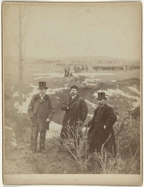 This photograph, taken by Paul Güssfeldt, captures Kaiser Wilhelm II and his entourage at a scenic overlook in Lofoten. The material is photographic paper, a relatively new medium at the time, made possible by industrial advancements in chemistry and manufacturing. The process of photography itself is central to understanding this work. Light, captured through a lens, chemically alters the surface of the paper. The tonal range, from light grays to near blacks, reveal the scene: the Kaiser’s retinue formally arranged on a rocky outcrop. Two men, likely local guides, attend to a small cairn, perhaps placing a marker of the Kaiser’s visit. The photograph’s value lies not just in its aesthetic qualities, but in its capacity to document and disseminate power. Photography, as a technology, democratized image-making to a degree. Yet, in this instance, it serves to reinforce social hierarchies, immortalizing the Kaiser's imperial gaze over the Norwegian landscape. Considering photography through its materials and making invites us to rethink traditional notions of art, and to recognize the power dynamics inherent in all forms of representation.