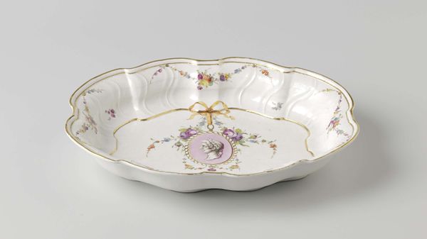 This oval dish with a scalloped edge, adorned with painted flowers and a ladder pattern, was crafted in Loosdrecht. While its specific date is unknown, its existence speaks volumes about the society that cherished such delicate objects. These porcelains reflect the culture of refinement and leisure enjoyed by the elite, at a time when global trade and colonial exploits brought new materials and tastes to Europe. The flowers symbolize not only beauty but also the human desire to cultivate and control nature, mirroring the colonial mindset of the era. The very act of producing and possessing such porcelain was deeply intertwined with issues of class and status. It invites us to reflect on the labor and resources required to create such objects, and who had the privilege to own them. What emotions do these images evoke in you?