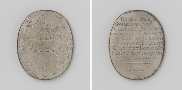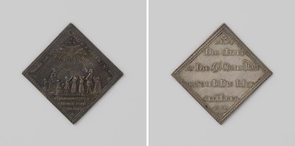 This is a silver medal titled 'Germany Freed from the French,' made by Georg Friedrich Nuernberger, an artist active in the late 17th and early 18th centuries. This work is a potent symbol of the complex relationships between nations and sovereignty. Created in a period marked by frequent conflicts and shifting alliances, the medal presents Germany's liberation from French influence. The imagery likely reflects the political tensions and nationalistic sentiments of the time. The visual representation of Germany being freed suggests a narrative of resistance against foreign dominance, resonating with those who sought to assert their cultural identity. The medal speaks to the human desire for autonomy and self-determination. The artist is not merely documenting an event; he is participating in the construction of a national narrative. Through the artistic choices, Nuernberger invites viewers to reflect on the emotional and ideological dimensions of national identity, liberation, and the ongoing negotiations of power among nations.