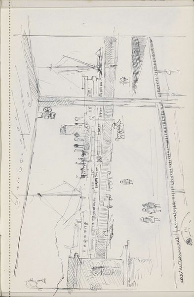 Cornelis Vreedenburgh made this sketch of a docked ship in a harbor with pencil on paper. Dominating the composition is the ship's mast, its rigging reaching skyward, a symbol of maritime adventure and trade. The mast, a vertical axis, has been a potent symbol across cultures, representing connections between the earthly and the divine. Think of the maypole, a vestige of pagan rituals, or even the Christian cross, each a variation on this ancient motif. This is related to the axis mundi: like trees, mountains, columns, or ladders. Here, the mast also possesses a melancholic edge. It has a sense of adventure, and the harbor is a place of departure and return, a reminder of human transience and longing for what lies beyond the horizon. The cyclical nature of journeys, the perpetual return to familiar shores after venturing into the unknown, touches something deep within us, an echo of our own life's journey. Thus, the image of the ship, immortalized through Vreedenburgh’s hand, has become a conduit for our shared, deeply felt experiences of exploration.