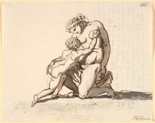 Here is a drawing of Venus and Cupid by Samuel De Wilde at the Art Institute of Chicago. The classical scene is rendered with delicate lines and tonal washes, establishing form and depth on paper. Venus sits regally, her figure composed of curvilinear lines, while Cupid stands beside her. The artist uses hatching to model their bodies, creating a sense of volume and texture. The composition invites reflection on themes of love and beauty. De Wilde's choice of medium and style also recalls the tradition of academic drawing. The precise draftsmanship and idealized forms reflect the era's preoccupation with classical ideals. Each line and shadow work together to convey the beauty, harmony, and idealized forms of classical art. Through the formal language of line and form, De Wilde engages with larger cultural and philosophical ideas. Art, here, becomes a site of ongoing interpretation where classical and romantic thought meet.