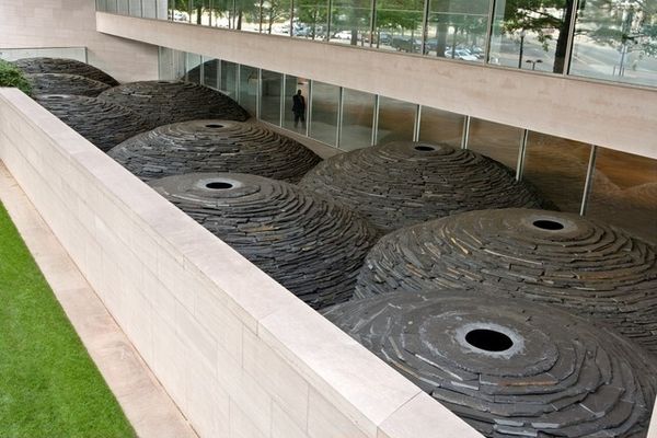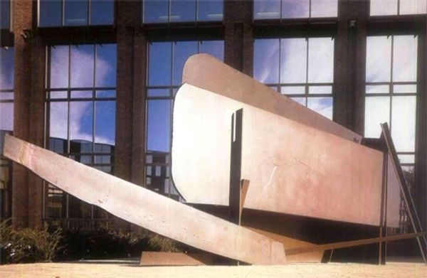 Curator: Okay, let’s dive in. Today we’re looking at Lila Pell Katzen's "Antecedent," a steel sculpture from 1975. Editor: Immediately, I’m struck by its gravity. The forms feel weighty, almost monumental, yet there's a stark simplicity in their geometric arrangement. It makes me think of some forgotten, ancient sign. Curator: That’s interesting. I see a modernist interplay of solid and void. Katzen uses steel, a very industrial material, to create these angular shapes. Notice how the negative space, the gaps between the forms, becomes just as important as the sculpture itself. Editor: Absolutely, and the placement, this site-specific approach, seems crucial. It interacts with the architecture, echoing its sharp lines while introducing an element of disruption. Almost like an uninvited guest. Curator: Well, that could be Katzen testing the boundaries of how sculpture occupies space, and, metaphorically, challenging the very notion of permanence and stability. It looks quite raw, weathered even. That patina hints at the passage of time, the evolution of form through natural processes. It almost feels like an echo of what was, and an idea of what will be, which seems right, considering that name... Editor: Ah yes, "Antecedent," a predecessor! You’re right. Perhaps these geometric shapes are the basic building blocks of something grander? And you can feel that sense of its placement affecting the eye as a disruption to that existing order—that’s some clever visual jujitsu. I mean, in a way, it has become part of the very identity of the site itself...a signifier! Curator: Exactly, it integrates! For me, there's a compelling ambiguity here—the sculpture teases you and hints, without giving you clear-cut meaning. A bit like memory itself, maybe? Fragmentary, yet undeniably present. Editor: A memory forged in steel. I appreciate the brutal honesty of its materials, the refusal to prettify or soften its statement. This piece asks us to actively engage with the space around us and, yes, question the very grounds beneath our feet. A testament to Katzen's sculptural vision. Curator: Right—it's not just sculpture, it's spatial poetry. Well, that's it from us for today; we hope this brief exploration has illuminated some of the fascinating dimensions of "Antecedent" and maybe shifted the earth just slightly under your own feet. Editor: Indeed. Go forth, look closely and keep questioning what seems permanent. Thanks for joining us.