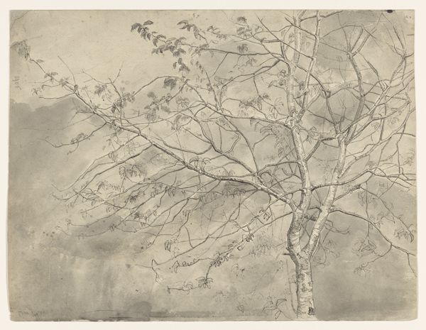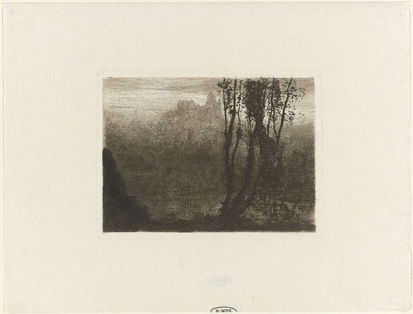 Editor: So, this is Trude Hanscom's 1952 etching, "The Tempest." I'm struck by how she uses line to convey such a raw and turbulent scene. What are your thoughts on how she created this? Curator: The etching process is critical here. Consider the labor involved. Hanscom likely used acid to bite into a metal plate, controlling the depth and thickness of the lines. This isn't just representation; it's a direct physical engagement with the material world to conjure this natural phenomenon. It invites reflection on how she, as the artist, labored to create this landscape, in comparison to how natural laborers of weather shaped the scene itself. What can that teach us about Hanscom's perspective on nature? Editor: That's fascinating. I hadn't thought about the labor aspect so directly. The print itself – the material object – becomes a record of that process. Does the edition number, 100/48, play into your Materialist interpretation? Curator: Absolutely. It forces us to think about reproduction, and the implications of consuming multiple iterations of the same image. Printmaking democratizes art, making it accessible beyond the elite, although the low number in the edition still suggest a limitation. But who are these for, and how are they distributed? Were they for teaching, commercial sale, or art-for-art's sake? Each would shift our understanding. Editor: I guess I usually focus on the imagery and what it "means" instead of considering that this is, like, a crafted object. Curator: Exactly. It’s not just an image, it’s a material document of a specific time, place, and mode of production, revealing a narrative about its creation and the social forces influencing it. Editor: I will never look at prints the same way. This helps understand the intersection of art, labor and consumption in landscape art.