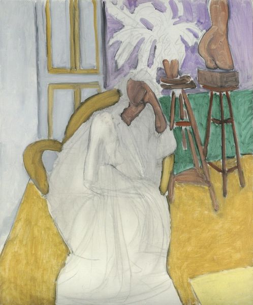 Édouard Vuillard created "The Cook" as plate eleven from "Landscapes and Interiors," using lithography to capture an intimate domestic scene. The composition, dominated by muted browns, blues, and creams, creates a sense of warmth. Vuillard masterfully blurs the distinction between figure and ground, where the cook seems to blend into her environment, becoming one with the kitchen's textured surfaces. This flattening effect is heightened by the limited use of perspective and the emphasis on pattern. Notice how the geometric designs on the cook’s blouse echo patterns on nearby objects, creating visual rhythms that unify the composition. The emphasis is not on individual form, but on the overall structure and the interplay of surface elements. The painting challenges traditional notions of representation by prioritizing the abstract qualities of color, pattern, and texture over realistic depiction. This invites us to see beyond the subject matter, to recognize the underlying structures that give the work its unique visual language.