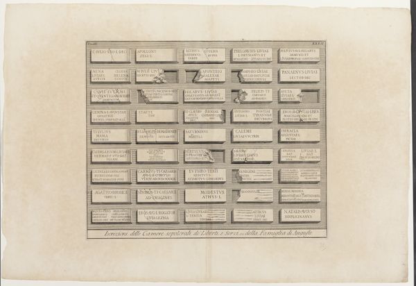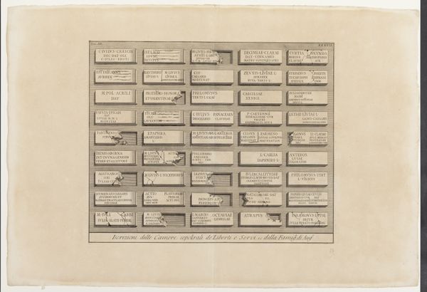 Curator: Looking at this piece, the immediate impression is of organized labor—an almost unsettling level of precision. Editor: That's an interesting take. What strikes me is its historical value as a document. We're looking at a print from 1727, titled "Plattegrond van de Compagnietuinen te Kaapstad"—essentially, a map of the Dutch East India Company's gardens in Cape Town. Curator: Right. So much can be discussed on the level of production! Think of the engraver meticulously transferring the garden plan onto the copper plate. The skill required, the labor involved, is quite evident. The sharp lines, uniform shapes. Editor: Precisely. The Dutch East India Company held immense power, and this garden represents their attempt to control and cultivate not only the land but also resources, including food and medicinal plants, in this new territory. Its geometrical layout embodies that colonial control, creating visual order amid potential chaos. Curator: It's about making nature predictable, right? I mean, look at these rigorously organized plots. Each one contains different crops—I notice cabbages, legumes and onions listed along the border. The entire scene highlights a planned and rational manipulation of nature for commodity production. Editor: Yes, a space of vital economic and social importance! It speaks to Dutch colonial ambition, illustrating their commitment to transforming Cape Town into a provision station that serves their trade routes. Curator: I wonder how many workers—slaves, most likely—toiled in these gardens. The engraving only offers the blueprint; the reality would involve forced labor to render this ideal manifest. The lack of human presence here ironically speaks to this oppressive system. Editor: Exactly. The map highlights power dynamics—those who planned and controlled the garden versus those who physically maintained it. Furthermore, distributing this image would bolster this claim and sense of authority and power. Curator: In conclusion, beyond the clean, geometric aesthetics of the Dutch Golden Age style and precision inherent in the engraving medium, the work provides much insight to consider when thinking about how landscapes of production relate to a society's colonial expansion and ambitions. Editor: Absolutely. This image reveals so much about the interwoven politics of resources and representation, while raising awareness of colonial practices that deeply transformed Cape Town.