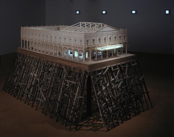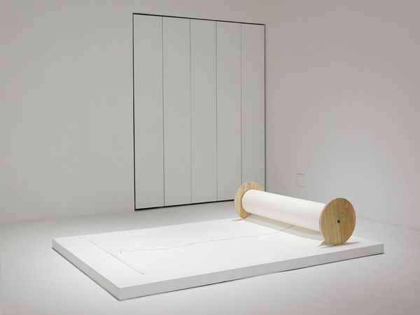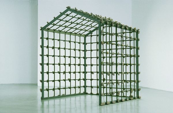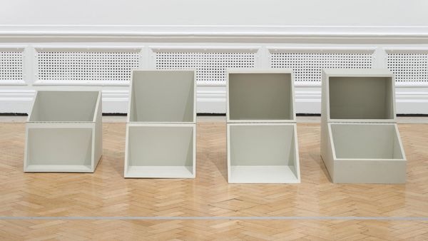 This is Robert Gober's 'Open Playpen', and he made it from wood and paint. I love the way Gober transforms familiar objects, nudging them into uncanny territory. Here, the pale, almost sickly, color flattens the object, diminishing depth, so it almost looks like a 2D rendering of a 3D object. It's all so pristine; the wooden slats are evenly spaced, and each surface is smoothly painted. The color is so uniform that I can’t see any brushstrokes or any trace of the hand, which seems intentional and unsettling. What do you think about the choice of materials? It has the effect of making something comforting into something sterile, and turns something familiar into something alien. It reminds me of the work of Charles Ray, where hyper-realism is used to create a sense of disquiet. Ultimately, it feels less like a functional object and more like a sculpture or readymade, like a Duchamp, prompting us to question what is real, what is fake, and where do we find meaning.