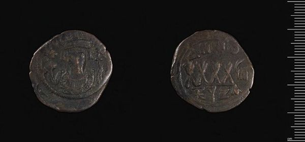 Curator: Here we have a Cistophorus issued by Marc Antony, a coin that offers fascinating insights into the power dynamics of the late Roman Republic. Editor: It looks quite worn, doesn’t it? But even with the wear, you can still feel the weight of history in it. Curator: Indeed. Coins like this were not just currency. They were tools of propaganda, circulating images of rulers and symbols of their authority. This one likely served as a statement about Antony's control over certain territories. Editor: I find the choice of symbols fascinating. The cista mystica, that basket, entwined with serpents! It speaks to a connection with Dionysus, or Bacchus, a god associated with transformation and liberation. Antony seems to be aligning himself with divine power. Curator: Precisely. The iconography would have resonated with audiences in the eastern Mediterranean, where such symbols were widely understood and held significance. Editor: A small object, yet so full of layered meaning and ambition. Curator: It really underscores how art, even in its most functional form, always reflects the social and political currents of its time.