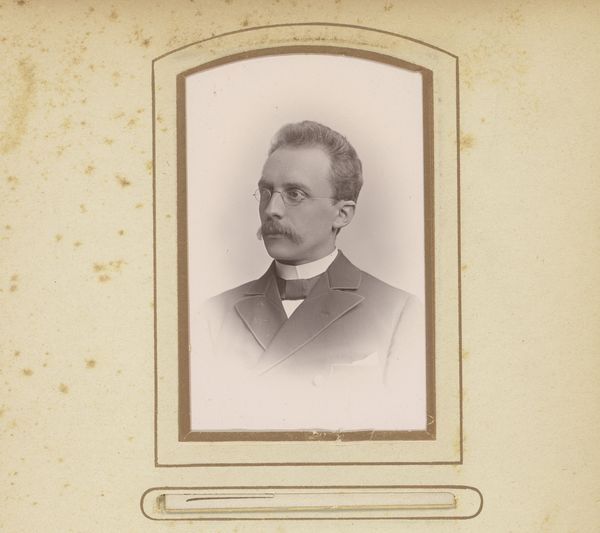 This is a portrait of a man by Auguste Anfray, a photograph mounted on card. Though undated, we might place it in the late 19th century, a time when photography was becoming increasingly accessible. Consider the rise of photography studios during this period. They democratized portraiture, allowing people outside the aristocracy to have their likeness captured. The subject's attire – a suit and tie – speaks to a growing middle class, keen to emulate the styles of the upper classes. The conventions of portraiture in painting are echoed here: the subject poses formally, gazing off to the side, in a manner that conveys respectability. Photographs like this offer invaluable insights into the social mores of the time. By researching photographic studios and their clientele in the late 19th century, we can better understand the social and economic forces that shaped the production and consumption of images like this.