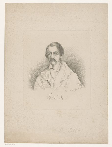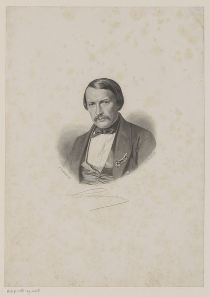 Editor: This is Léon Brunin’s "Portret van Francis Enne," made in 1883, a pencil drawing. It feels quite formal and precise, almost like a photograph rendered by hand. How do you interpret this work? Curator: Well, beyond its clear demonstration of academic skill, the portrait provides insight into the cultural values of the late 19th century. Portraits were crucial in establishing and maintaining social status, especially for the bourgeoisie. Do you notice anything about the subject’s attire? Editor: Yes, the suit and bow tie definitely indicate a certain level of affluence and adherence to social norms. Curator: Precisely. The choice of pencil, a relatively accessible medium, also points to the increasing democratization of art, but within very prescribed visual languages of social class and propriety. Also, considering its existence as a drawing, not a painting, what statement do you think Brunin is trying to make, versus someone like Manet? Editor: Hmmm. Maybe it signals an engagement with realism, but still within the boundaries of acceptable portraiture at the time, lacking the overt political statements of someone like Courbet? Curator: That's a perceptive observation. This drawing demonstrates an attempt to capture likeness while also subtly reinforcing social structures through the visual language of the time. It reminds us that portraiture is rarely just about the individual. Editor: I hadn't really considered how the medium and style choices work together to reveal social contexts. Thank you! Curator: Indeed. It's through these layered readings that art history truly comes alive.