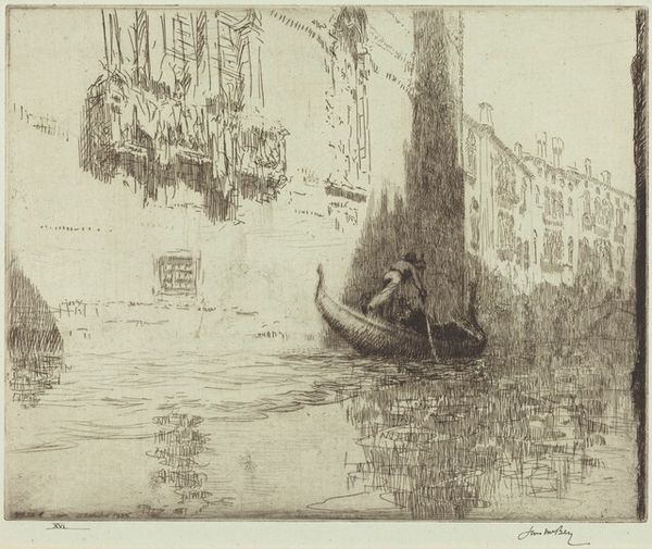 James McBey made this etching, Palazzo dei Cammerlenghi, sometime around 1925. It's all about process, isn't it? Those cross-hatched lines building form and space. The way he’s built up the darks and lights to give us a sense of depth. I’m interested in the way McBey uses line to describe the scene, it has a real sense of immediacy. The texture of the water, the way the buildings rise up, the mass of gondolas clustered together. Look closely at the lone gondola at the front of the image, the way the lines are more sparse here, giving it a sense of lightness and movement, it's almost disappearing into the nothingness of the water. It’s really quite beautiful. The marks here remind me of Whistler's etchings. Both artists share a fascination with capturing the atmosphere of a place through a kind of shorthand of lines. But where Whistler's work feels more studied and precise, McBey's has a looseness that invites you in. Art's an ongoing conversation, right?
