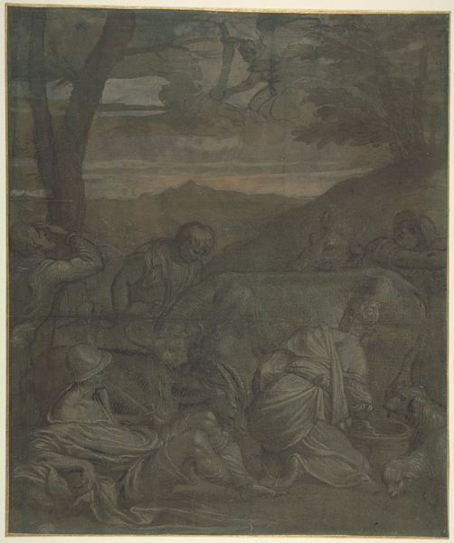 Editor: This fresco is entitled "Cephalus Hiding the Jewels" by Bernardino Luini, created around 1520 to 1522. The figures are captivating, aren't they? I find it particularly engaging how the story seems to unfold across the landscape, drawing you into its narrative. How do you interpret this work? Curator: Luini's placement of the narrative within an accessible landscape reflects a broader shift in the Italian Renaissance. Instead of lofty allegory, art engaged with a rising merchant class, who desired scenes of everyday life enriched with classical tales. Consider the function of frescoes: they often decorated homes. How does domestic context change your understanding of the artwork? Editor: That’s fascinating. I hadn’t thought about its original location affecting its reception. So, having this mythological scene inside someone's home… almost domesticates it? Curator: Exactly! It's not just a historical painting but an object of aspirational identity. The narrative of Cephalus and Procris becomes a subtle commentary on wealth, trust, and the pitfalls of suspicion—moral lessons cleverly woven into daily life through art. Does that shift your perspective on the piece? Editor: It does! It makes me wonder who would have seen this fresco, and what their lives were like. The history is literally embedded in the paint! I didn’t consider the audience beyond an art-historical context at first. Thanks for the new insight! Curator: And I'm reminded of the power of these domestic artworks to offer intimate views into Renaissance values, and influence culture. The art's purpose transcends aesthetics.